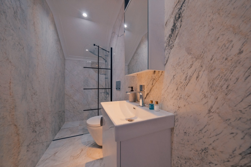Her iki yatak odası da ebeveyn banyosuna sahiptir. Konforlu tasarımı ve ferah kullanım alanlarıyla keyifli bir konaklama imkanı sunar.
